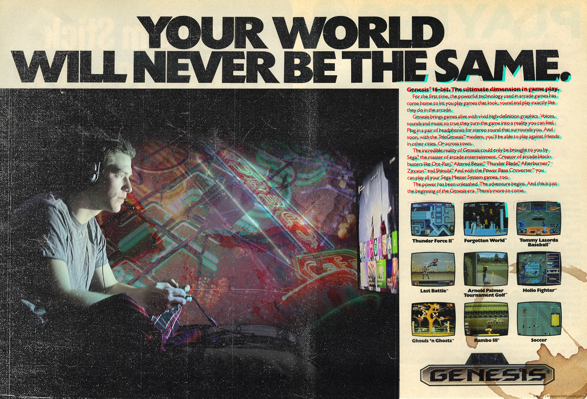 This was an introductory Photoshop work I created to represent where much of my creative curiosity comes from - digital media. The content that I consume (movies, videogames, animations) inspires me to create media that reaches other people. I find it so fascinating how everyday media were handcrafted by digital artists around the globe. I hope to spark that same curiosity in other artists (Spring 2024).