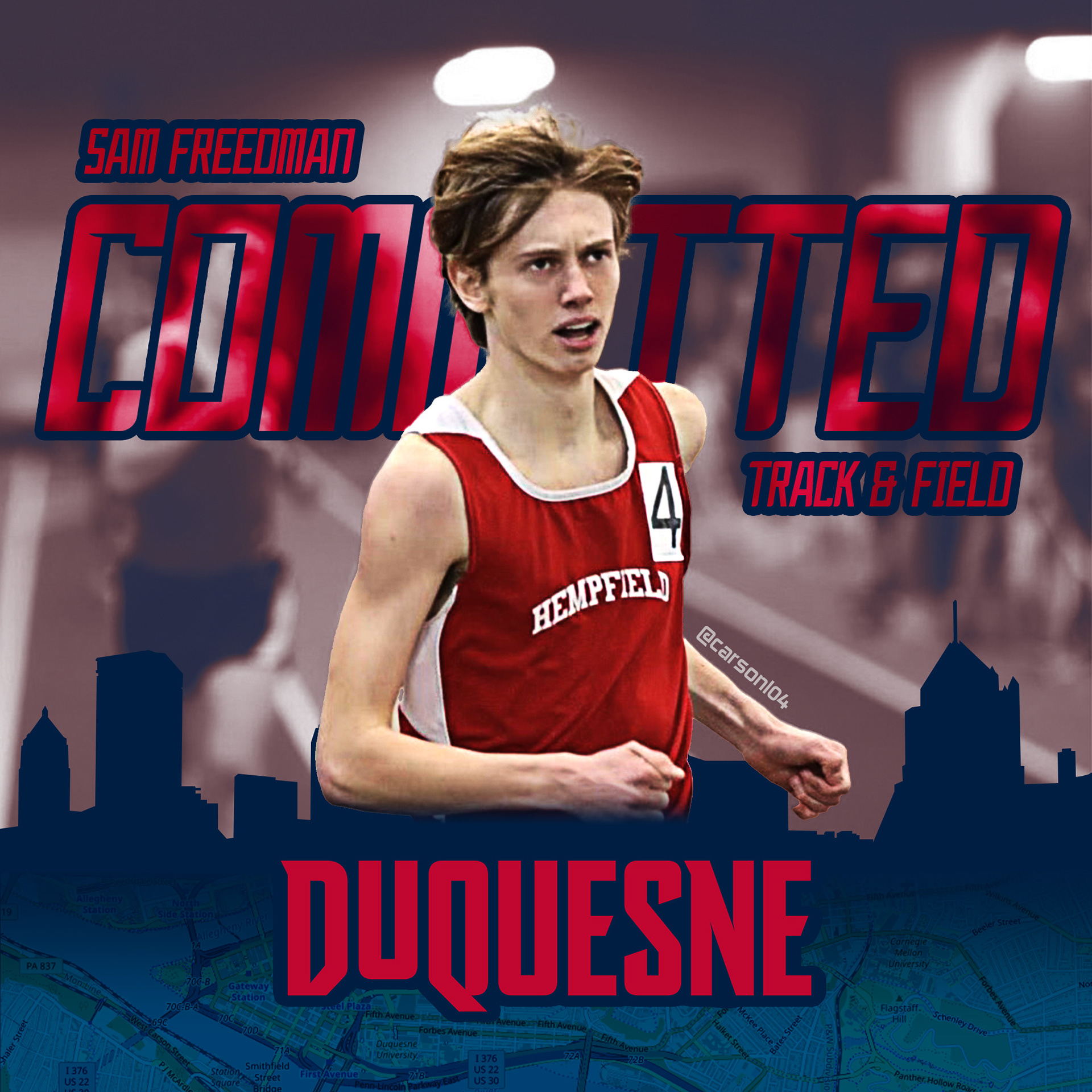 This commitment poster was for a friend of mine from high school. The typeface used is JerrySport, created by dafont.com user, ghielzact (Spring 2024).