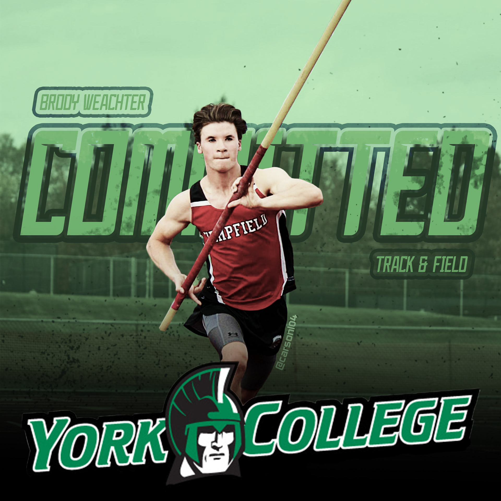 This is a commitment poster for another friend of mine from high school. The typeface used is JerrySport, created by dafont.com user, ghielzact (Spring 2024).