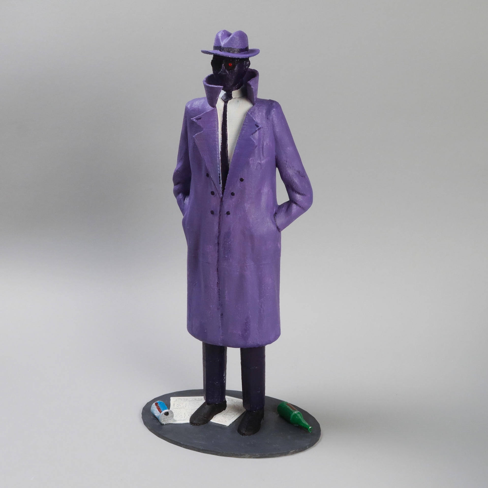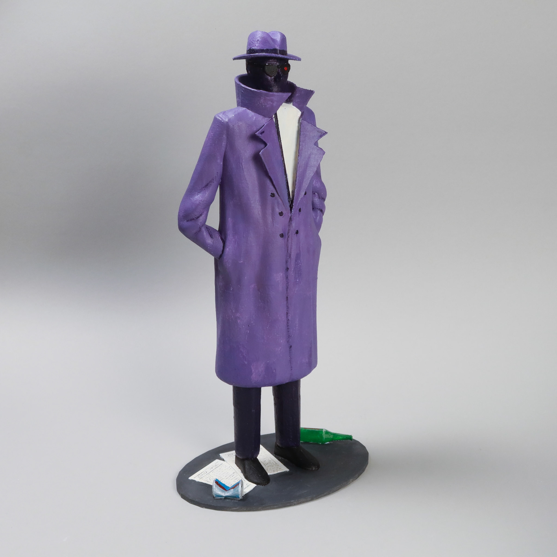 My "Spy Character" 3D project is an interdisciplinary experiment that combines Blender work, 3D printing preparation, digital fabrication, and hand painting the model. I took inspiration from an animation I had created in the spring earlier that year, and the character that I drew. I captured him in 3D form digitally, and then brought him to life with a model (Fall 2023).